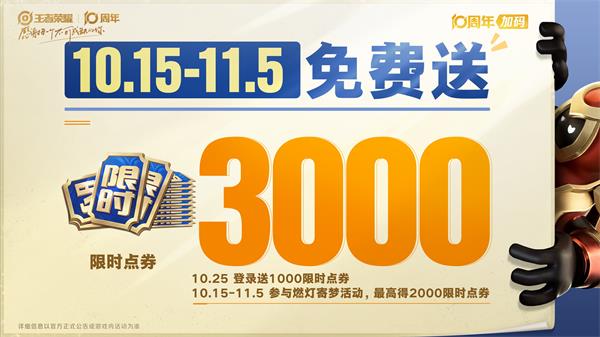 王者荣耀十周年福利有哪些?具体可以领多少限时点券?王者荣耀十周年纪念日即将到来,官方也公开了大量全新的福利以及公告,包含有3000限时点券、皮肤赠送等等,整体的豪华度更胜以往。但不少玩家不知道具体都有哪些内容,据此这里我们带来了王者荣耀十周年福利的汇总,快来看看吧。