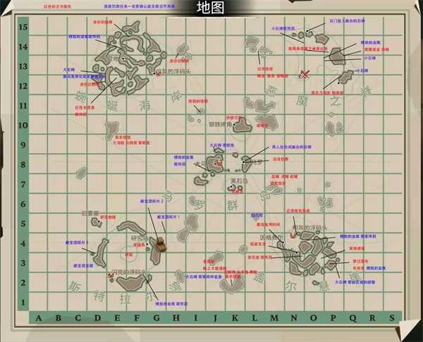 3.各岛屿均分布有采集点,但需准备炸药,多数精致金属需炸开。